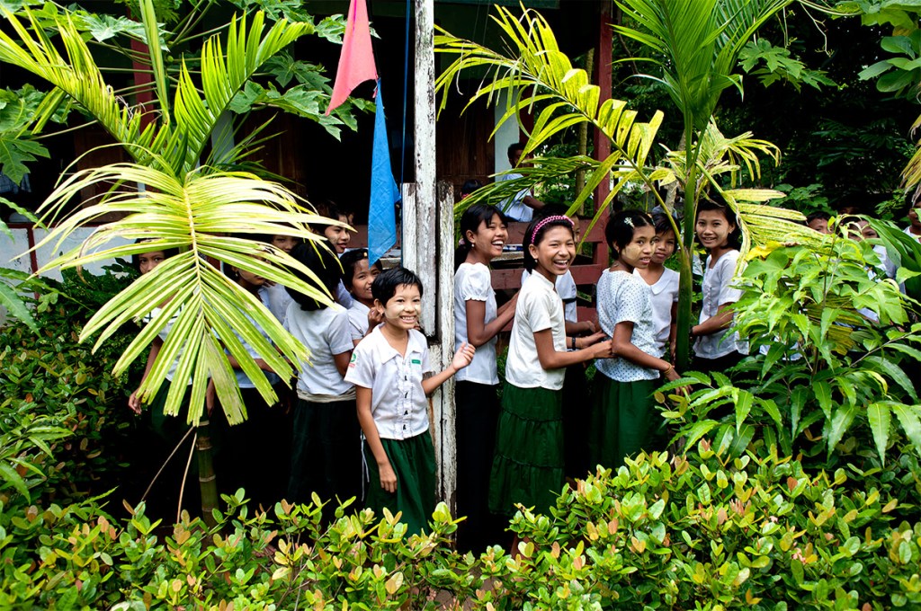 A short boat ride from Sittwe in Myanmar’s Rakhine State lies Wabo village. The settlement is known as the “weaving village” and here you’ll see women working hard at looms in the sheltered areas located below the ground floors of their stilted homes. Wabo is famous for the design and quality of its longyis, the traditional, wrap-around garment still worn by a majority of Myanmar’s inhabitants. While walking around the village—it was in 2008—I came upon this school, and the kids had just been let out for a short spell. There was something about the school’s wooden structure and the children with their smiles, framed within a break in the surrounding lush foliage, that made this, for me, a memorable shot.